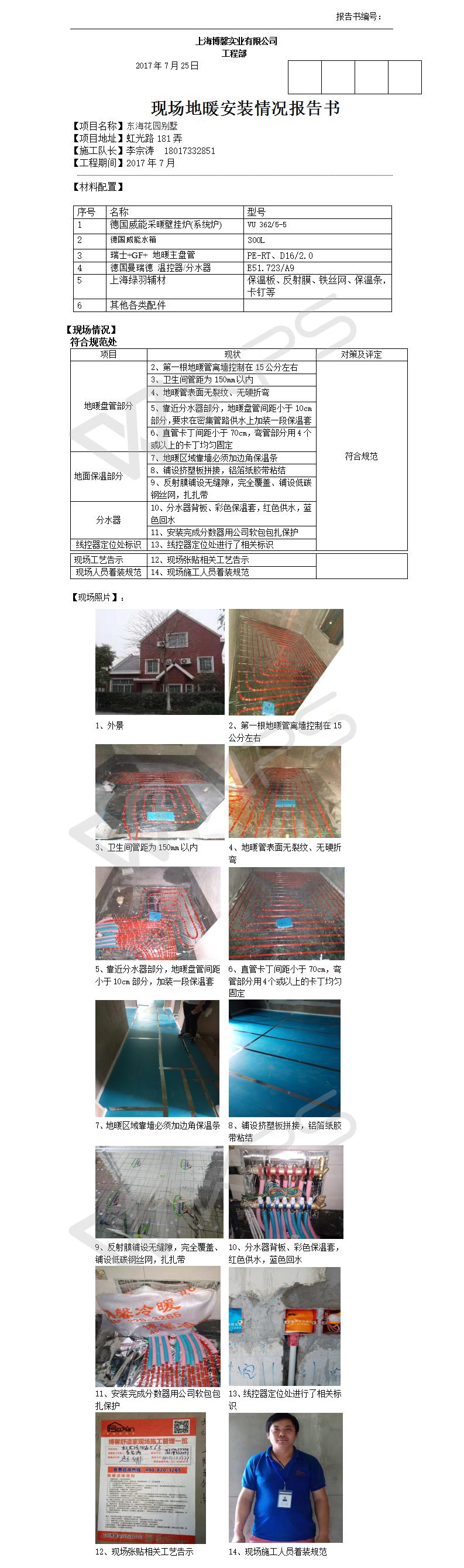 东海花园别墅地暖报告书