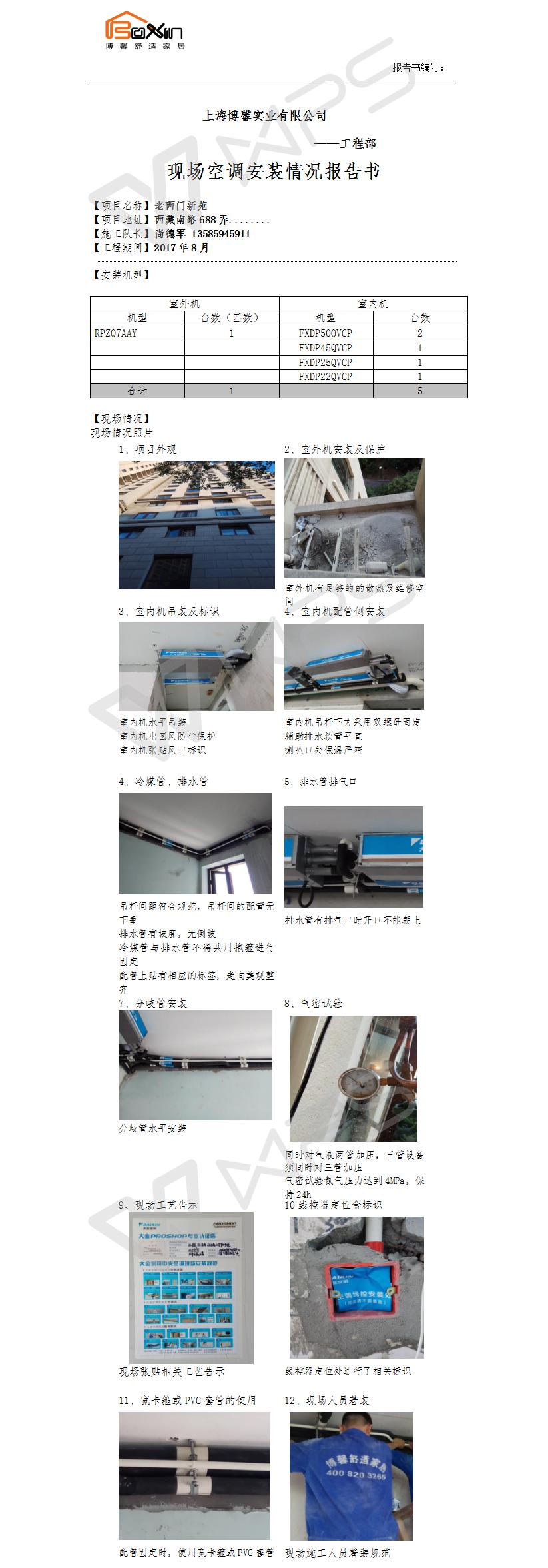 老西门新苑空调施工报告书