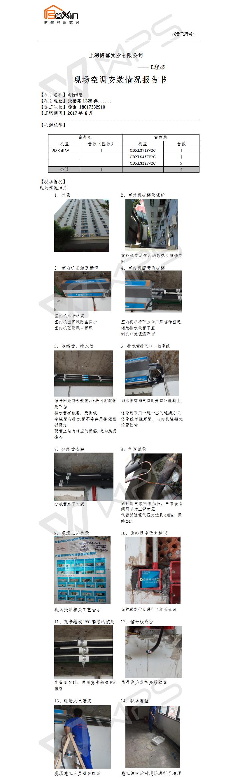 静安枫景空调施工报告书