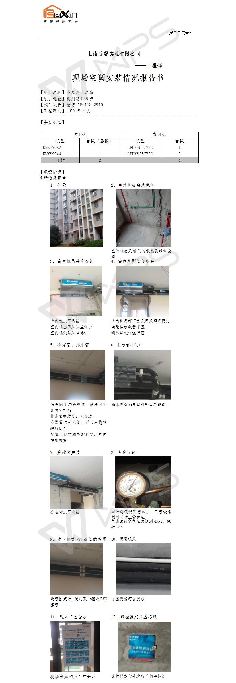 中星海上名庭空调施工报告书