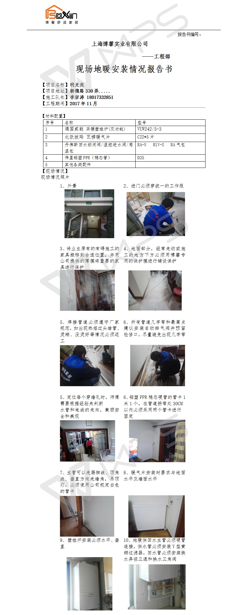 明光苑明装暖气片施工报告书