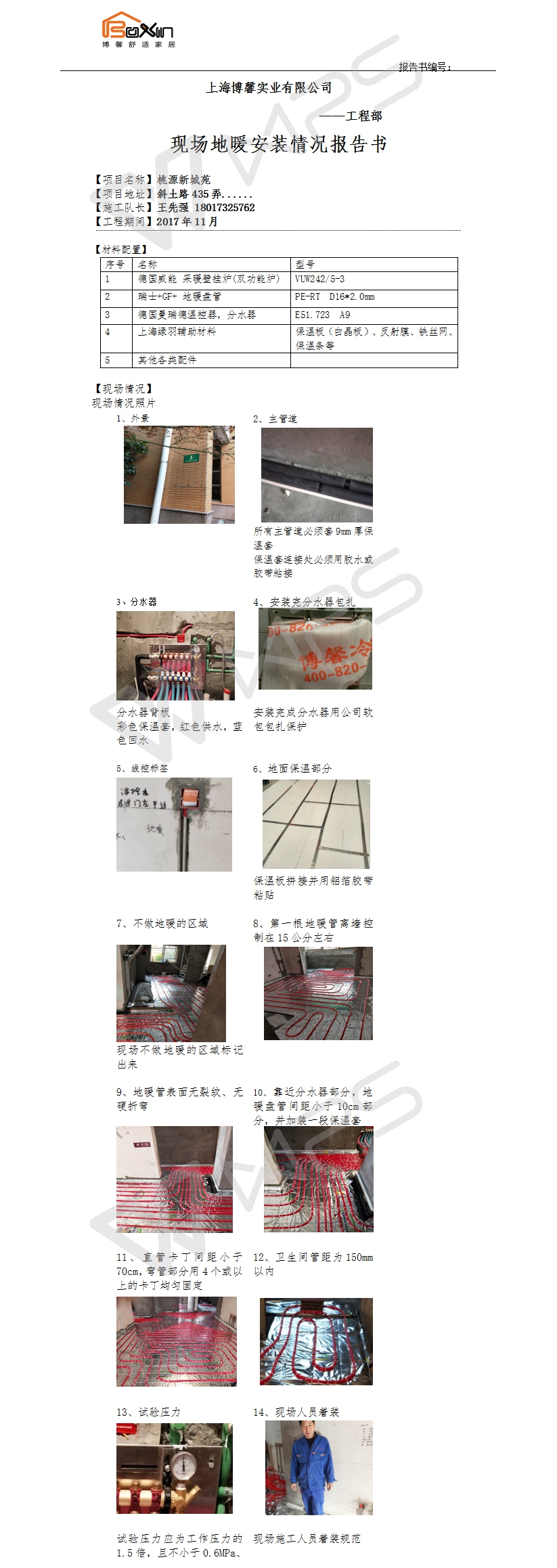 桃源新城苑地暖施工报告书
