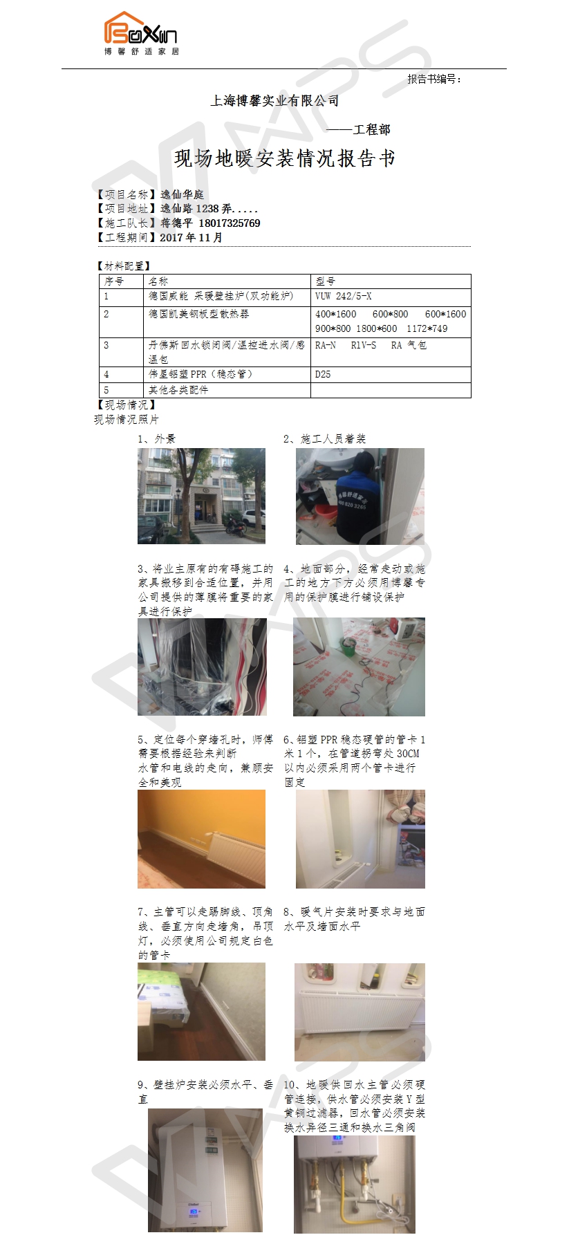 逸仙华庭明装暖气片施工报告书