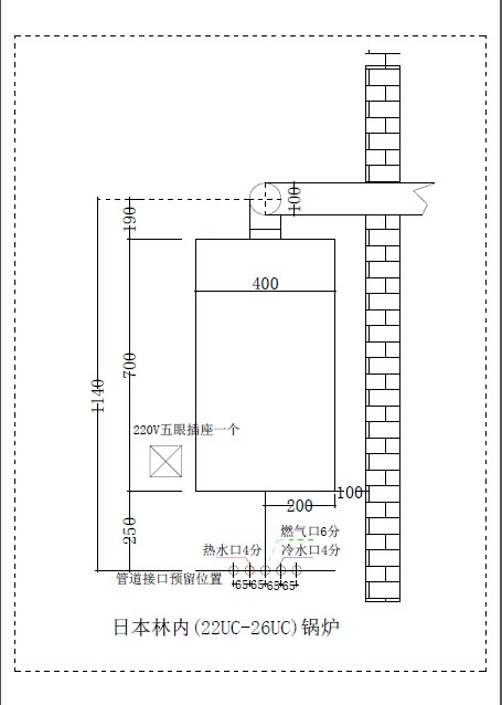 日本林内22-26千瓦两用炉安装定位图