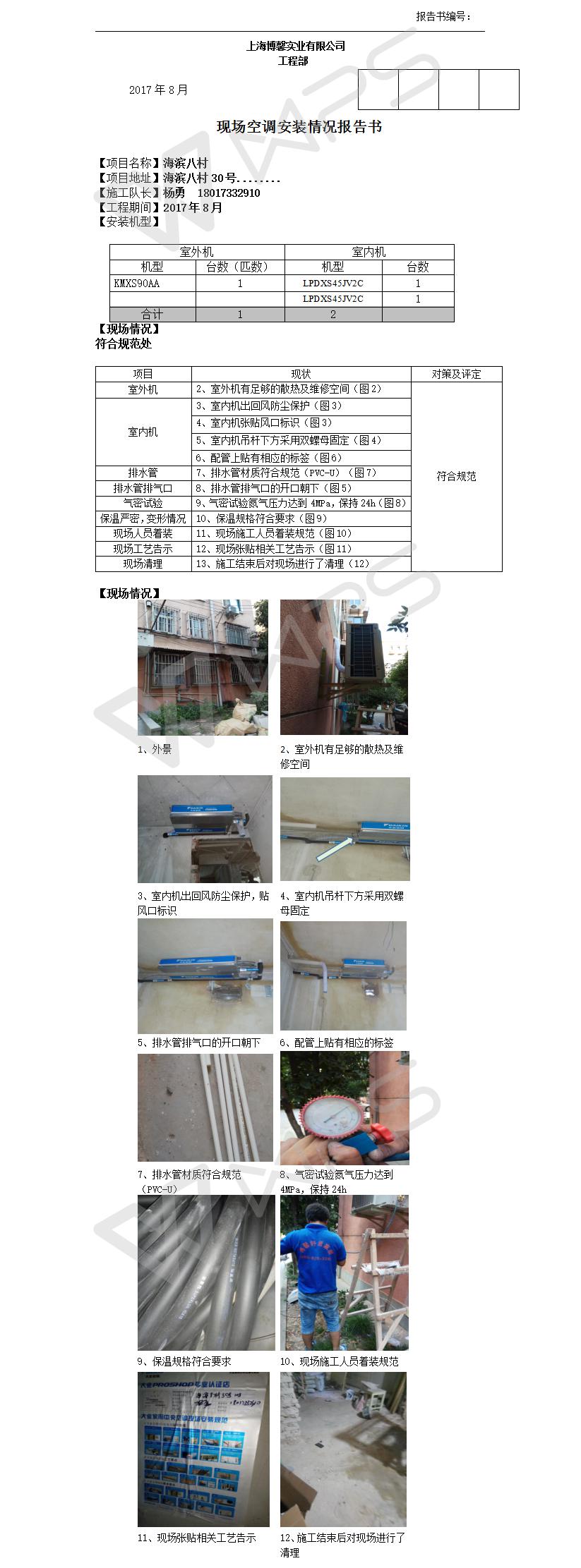 海滨八村空调施工报告书