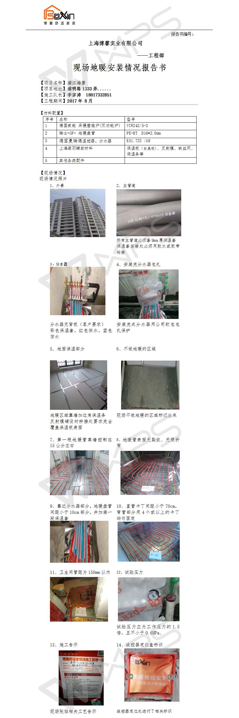 浦江海景地暖施工报告书
