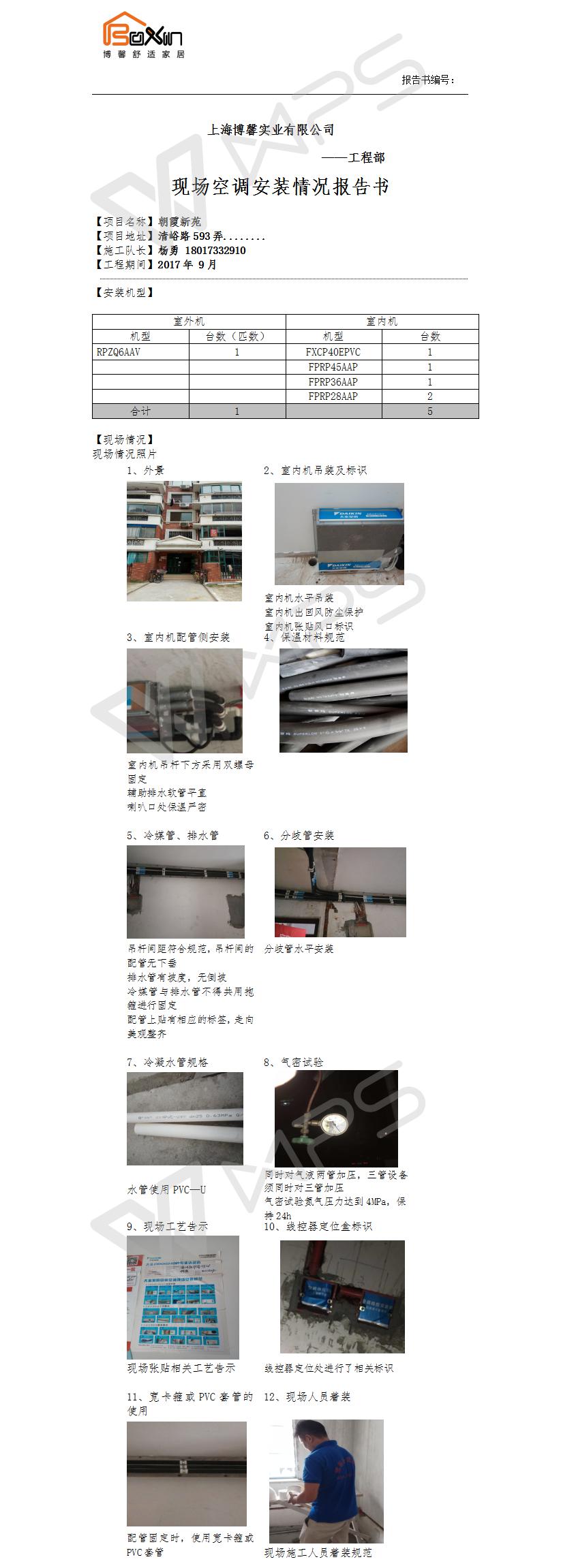 朝霞新苑空调施工报告书