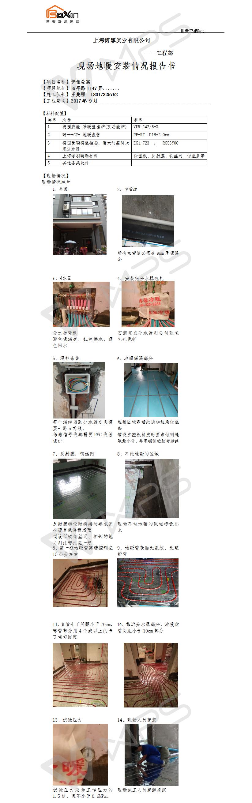 伊顿公寓地暖施工报告书