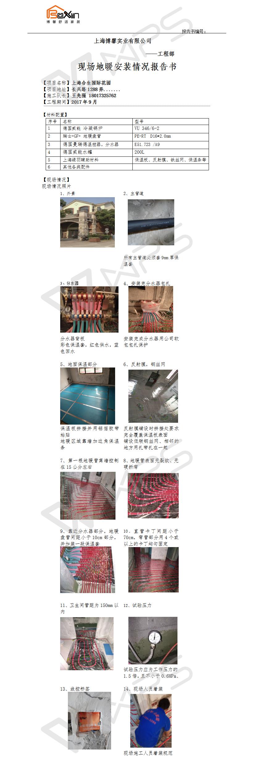 上海合生国际花园地暖施工报告书