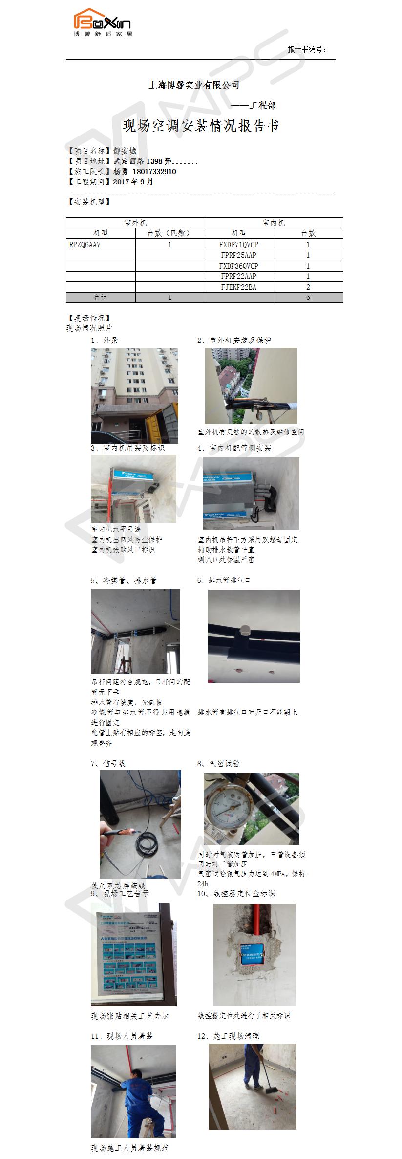 静安城空调施工报告书