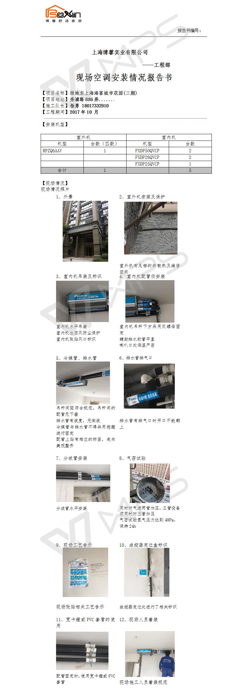 上南玲珑苑空调施工报告书
