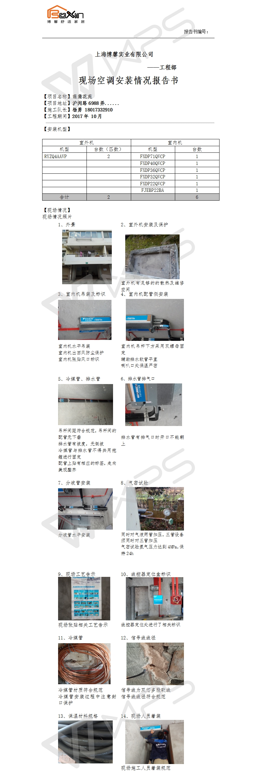 莲蒲花苑空调施工报告书