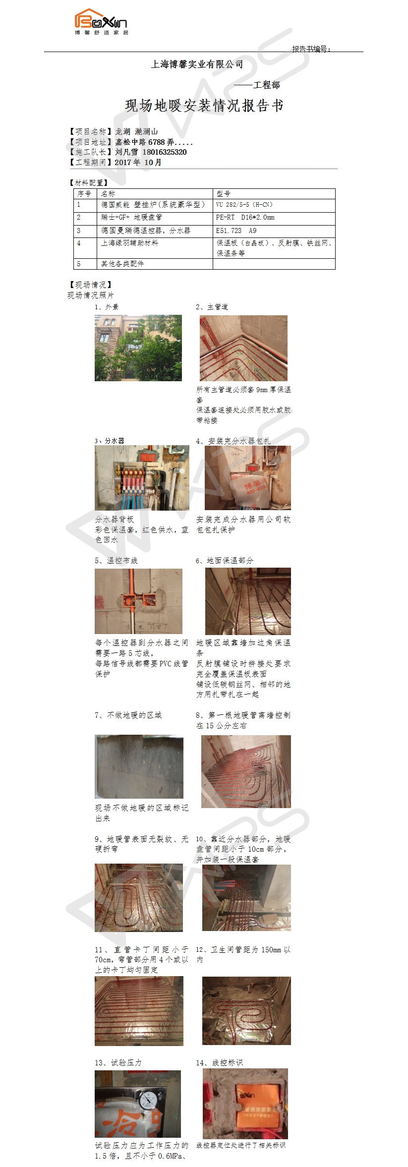 龙湖 滟澜山地暖施工报告书