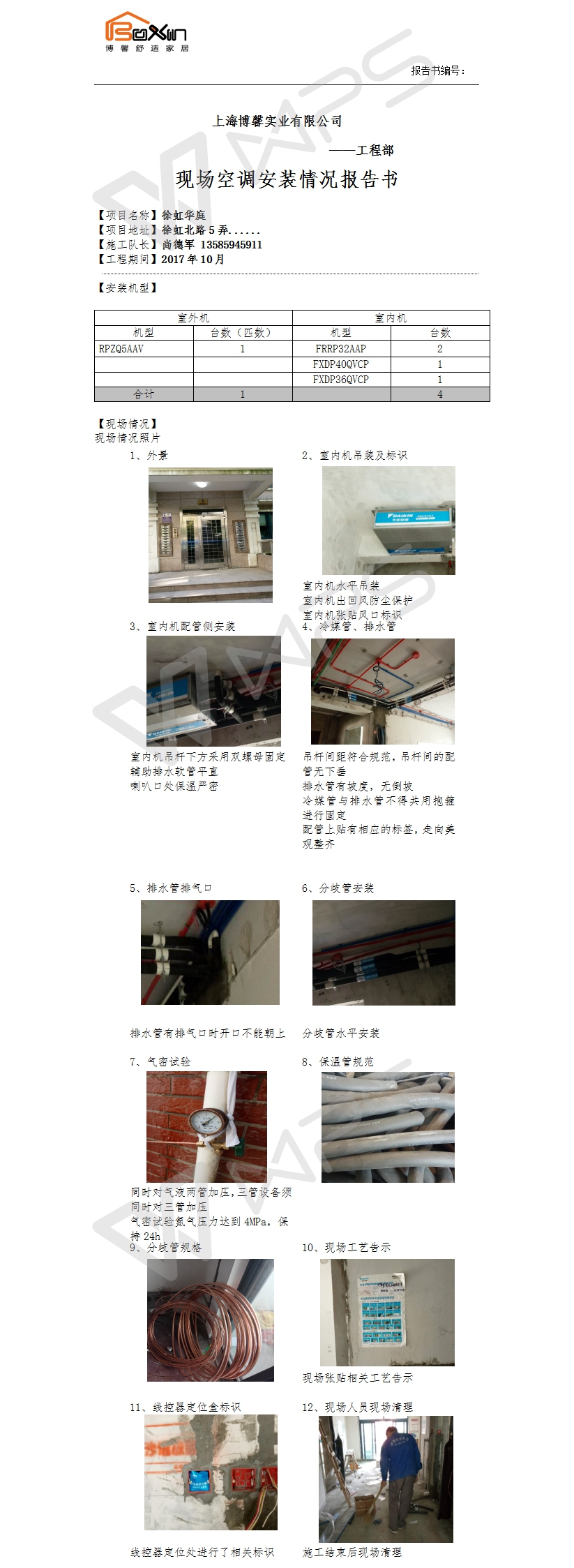 徐虹华庭空调施工报告书