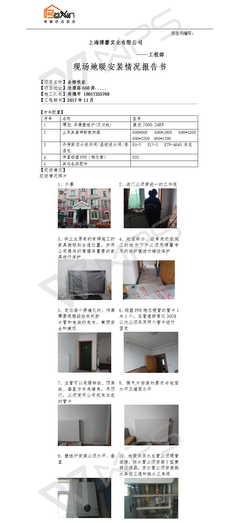 金榜世家明管暖气片施工报告书