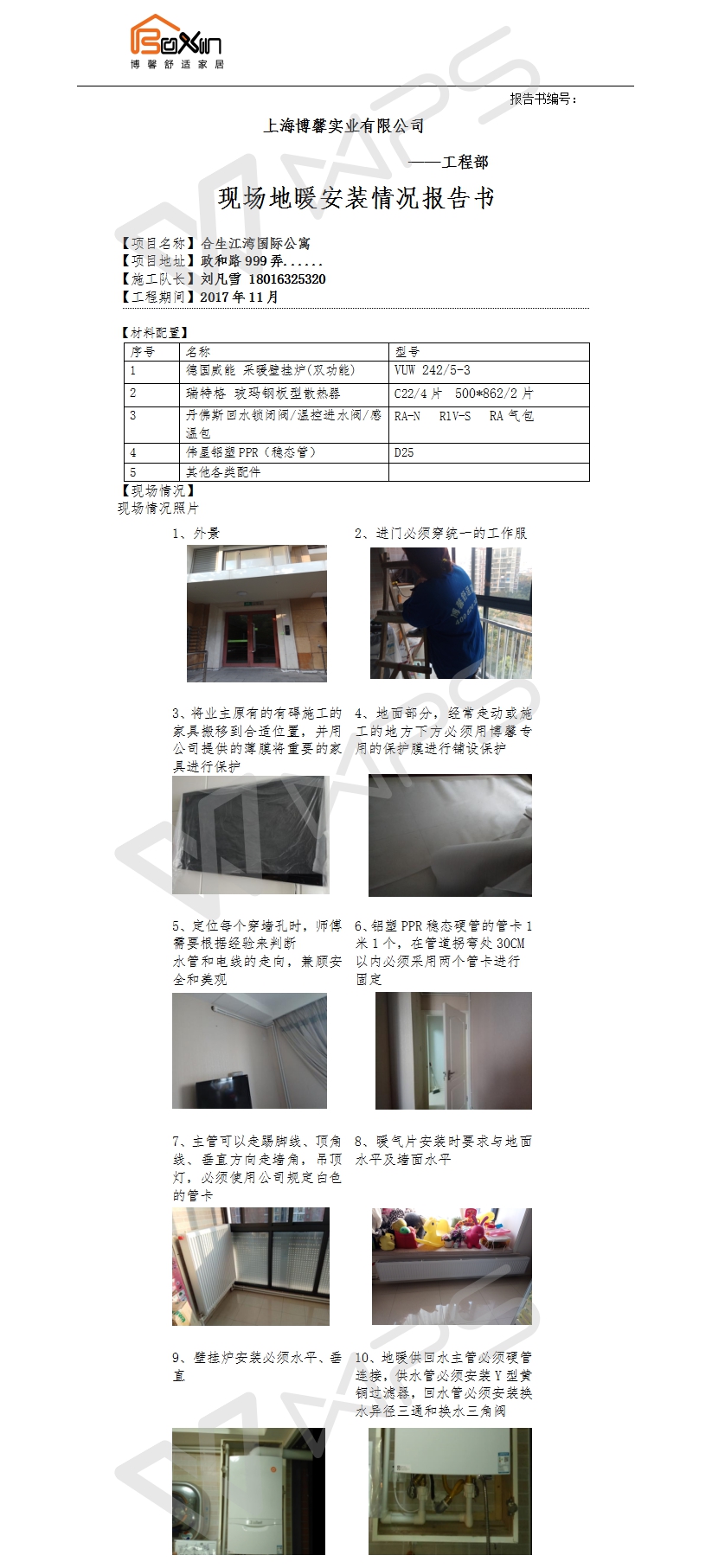 合生江湾国际公寓明装暖气片施工报告书