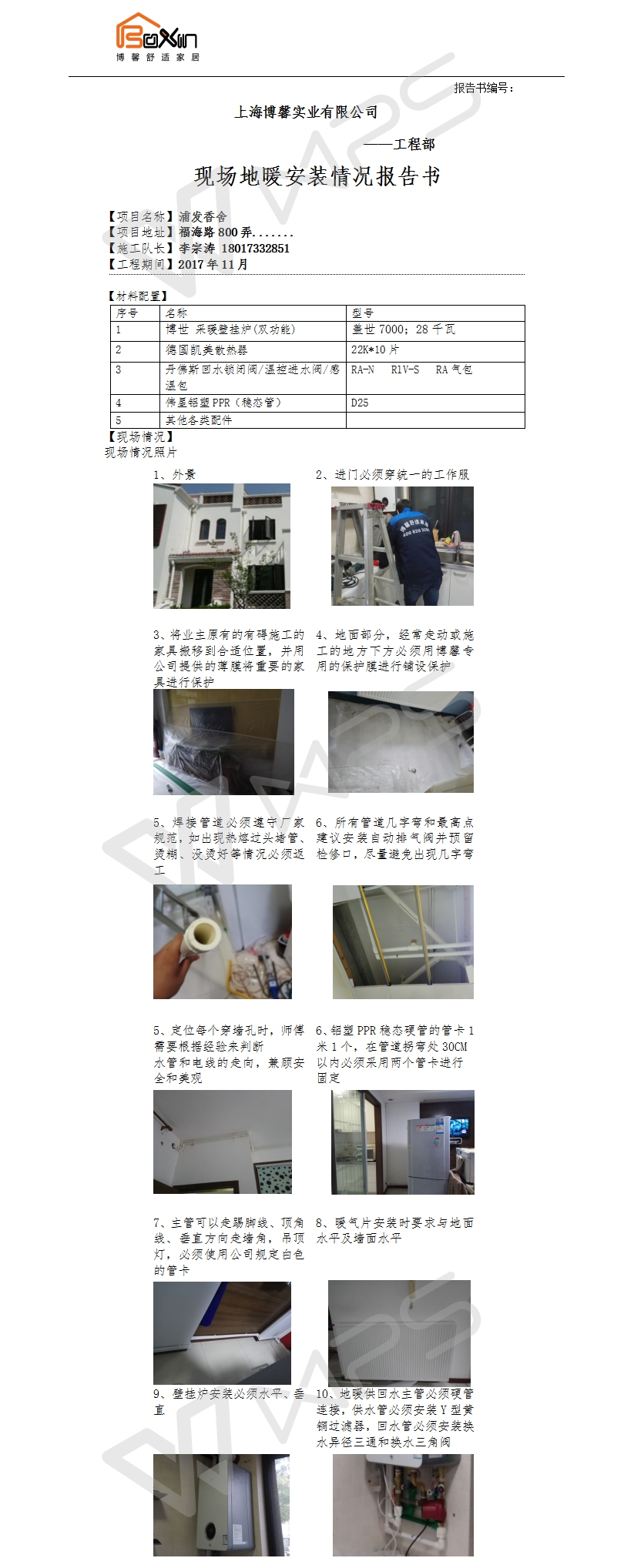 浦发香舍明装暖气片施工报告书