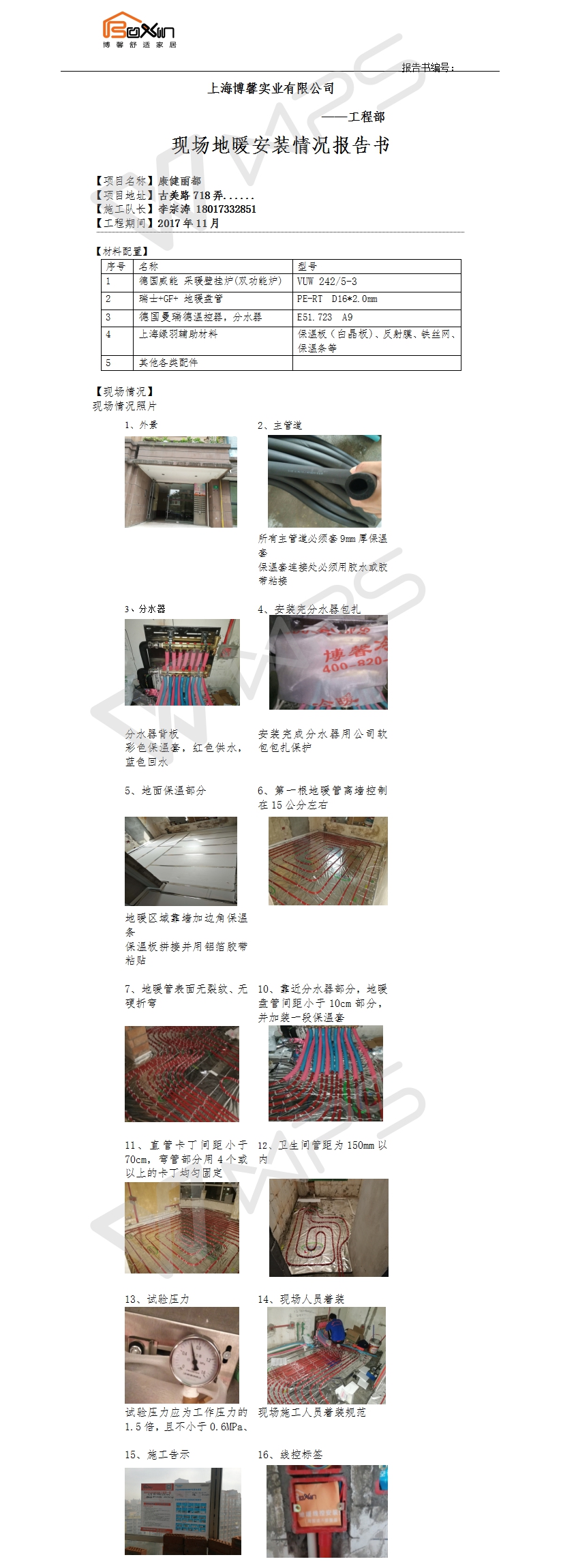 康健丽都地暖施工报告书