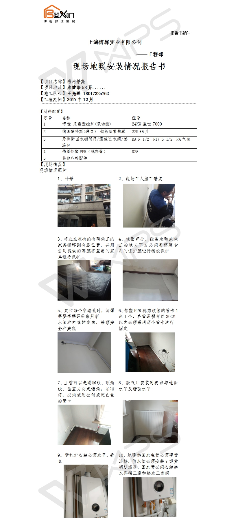 漕河景苑明装暖气片施工报告书