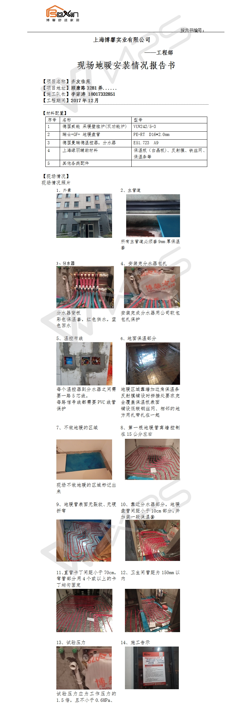 静安晶华园地暖施工报告书