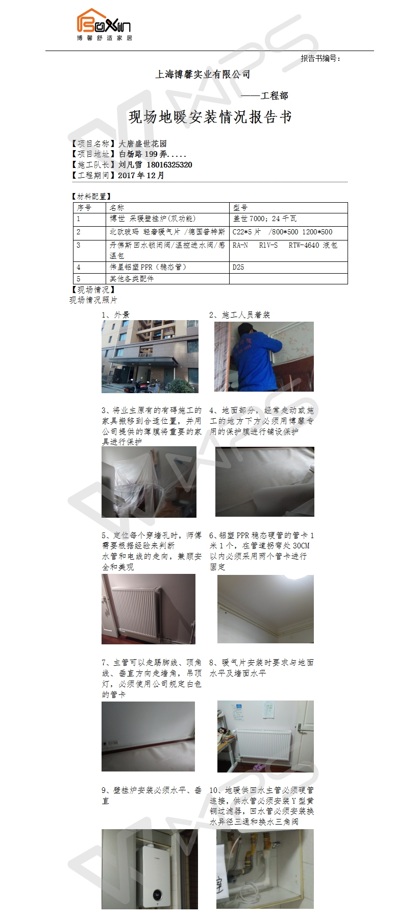 古北瑞仕花园明装暖气片施工报告书
