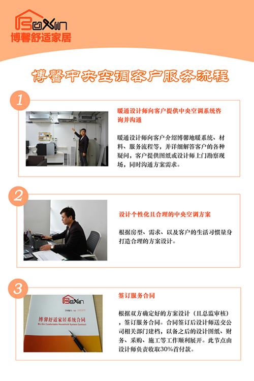 暖通市场鱼龙混杂、不成熟,上当受骗者比比皆是。欢迎广大客户到博馨设计展示中心咨询体验。如果有缘,感受一次博馨标准的精品服务流程,一定不会让您失望!希望大家踊跃报名参与,博馨全体员工期待您的光临!