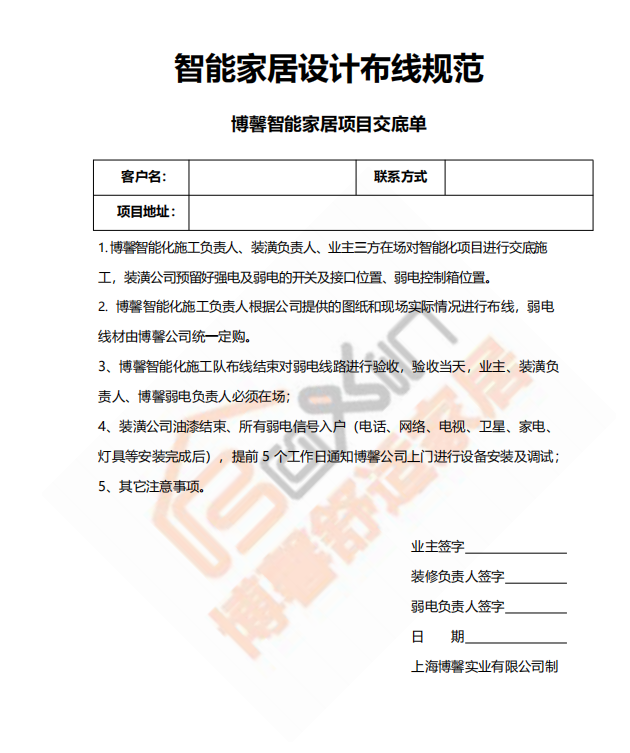 博馨施工工艺指南之智能家居隐蔽工程验收单