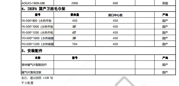 博馨施工工艺指南之瑞特格散热片毛巾架规格表