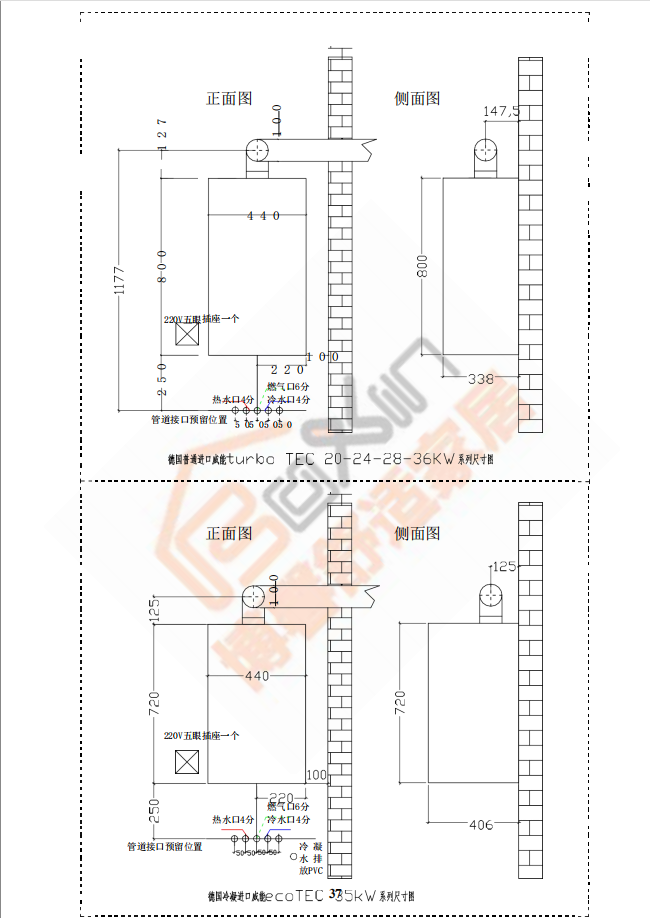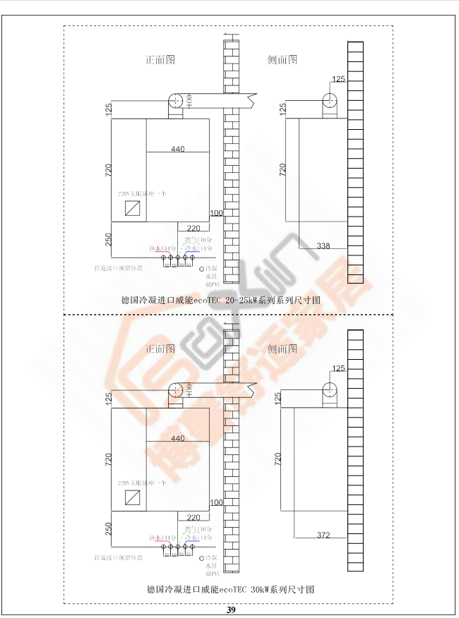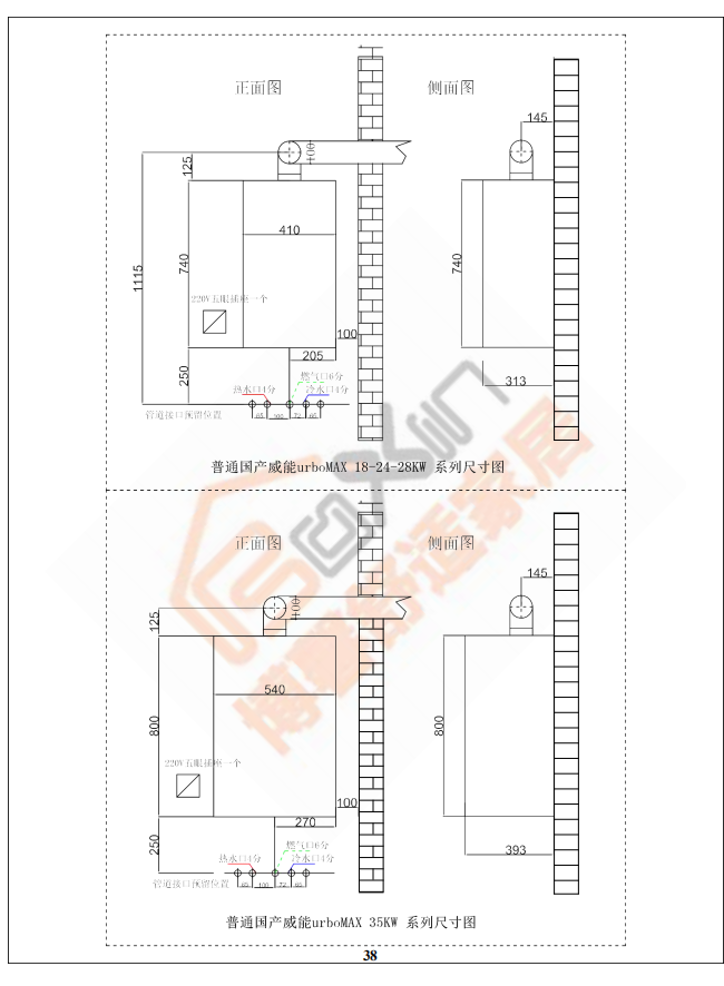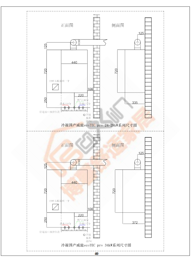 博馨施工工艺指南之威能锅炉安装尺寸图