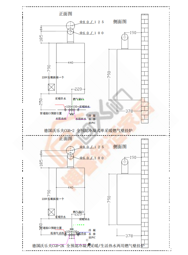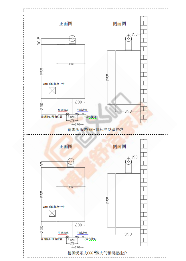 博馨施工工艺指南之沃乐夫锅炉安装尺寸图