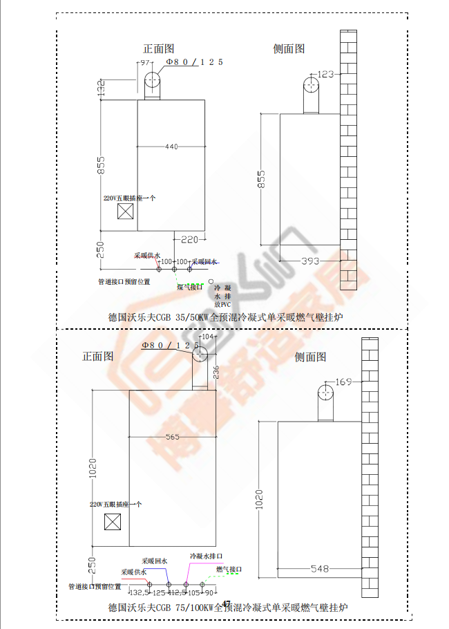 博馨施工工艺指南之博世锅炉安装尺寸图