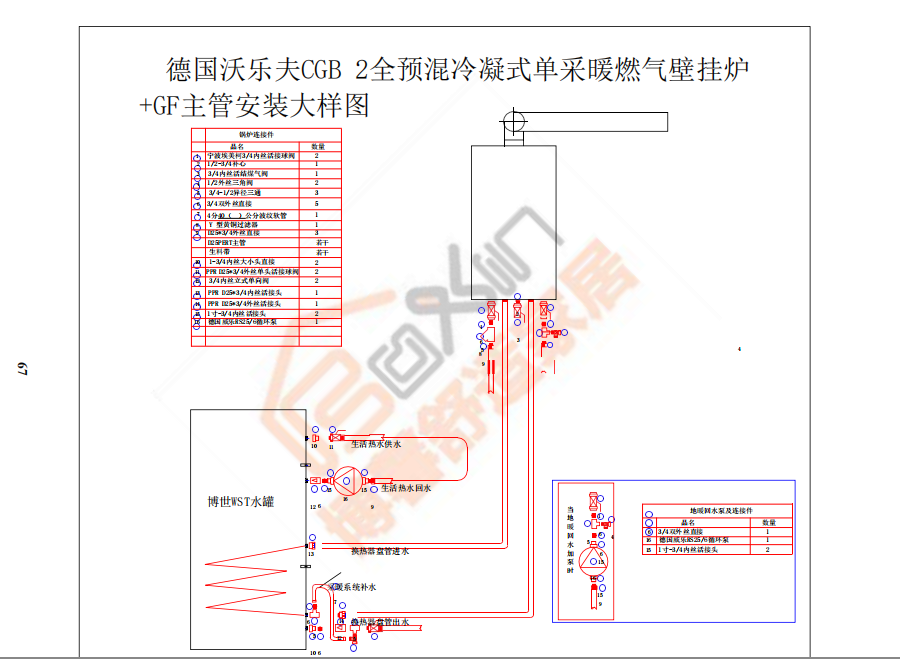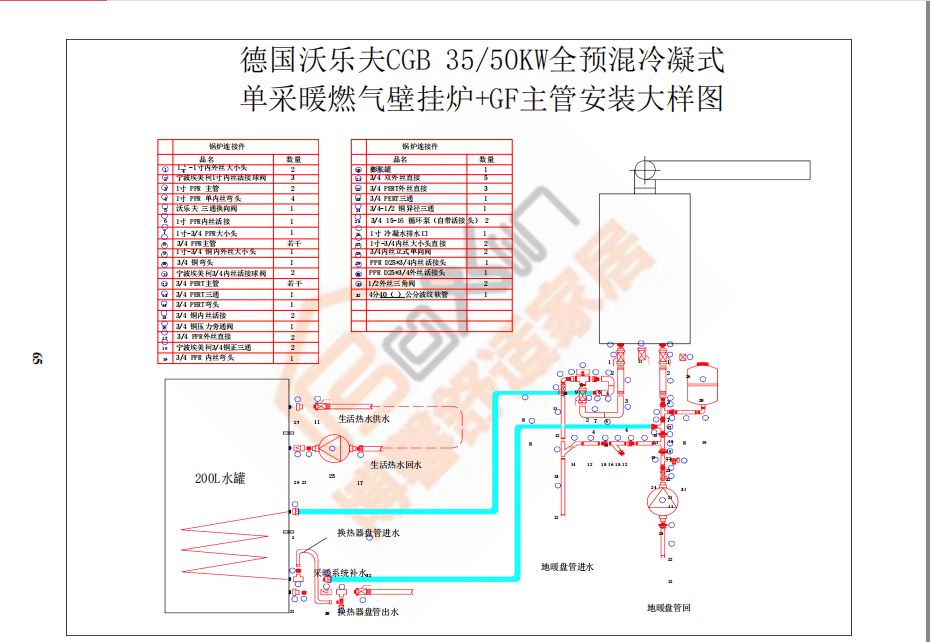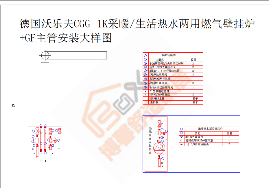 博馨施工工艺指南之威能系统炉中央热水部件连接图纸