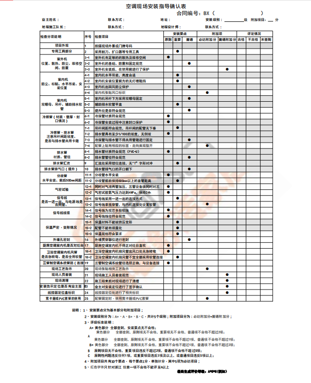 博馨施工项目安装确认表之中央空调安装指导确认表
